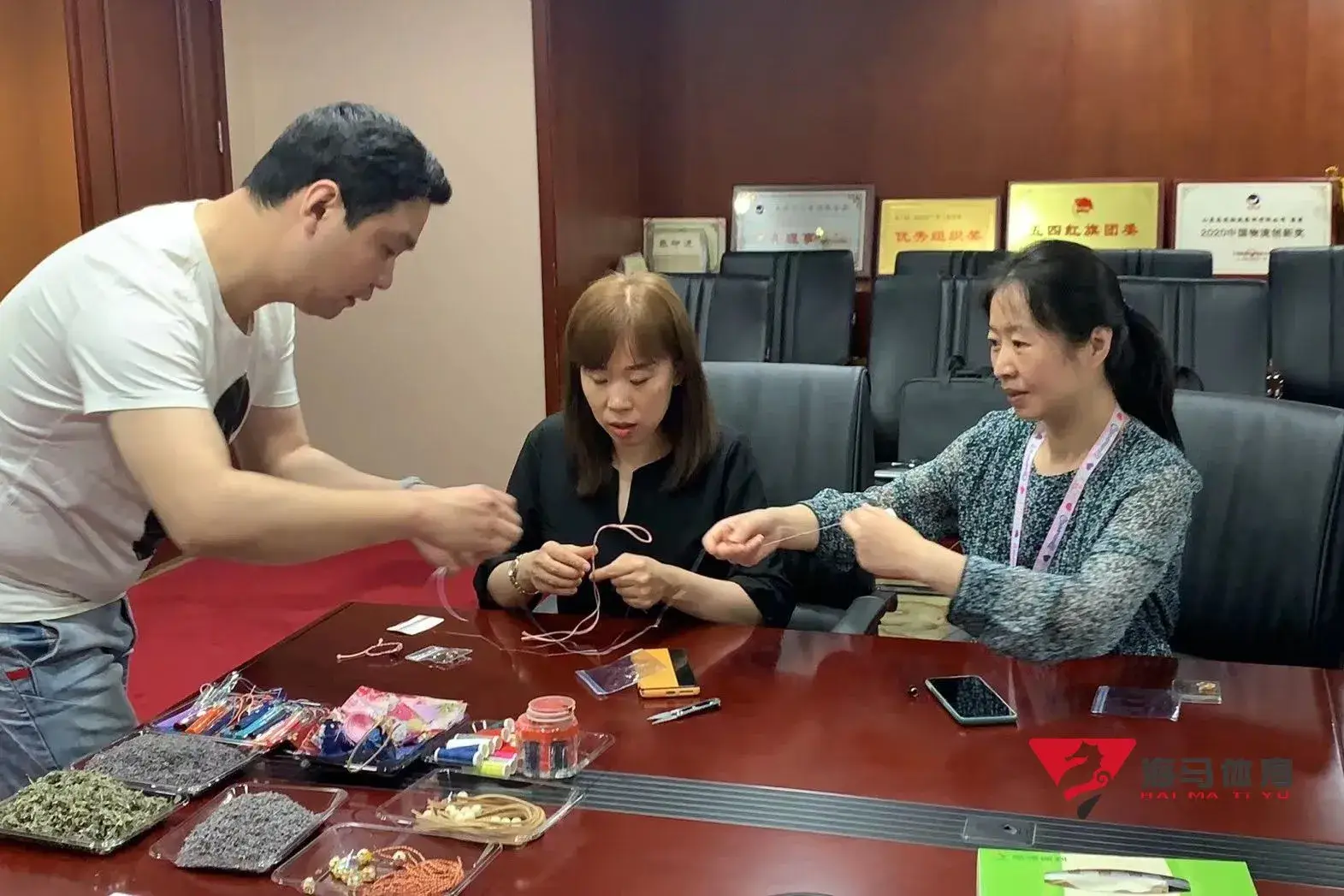 制作前,极悦娱乐的手工老师首先介绍了端午的习俗以及端午节制作香囊与五彩绳的来历,让大家在活动前了解端午的民俗文化,手工老师将精心准备的有着美好寓意的五色彩绳、色彩绚丽的香包袋以及清香的艾草薰衣草,送到职员手中,携手制作香包和五彩绳。